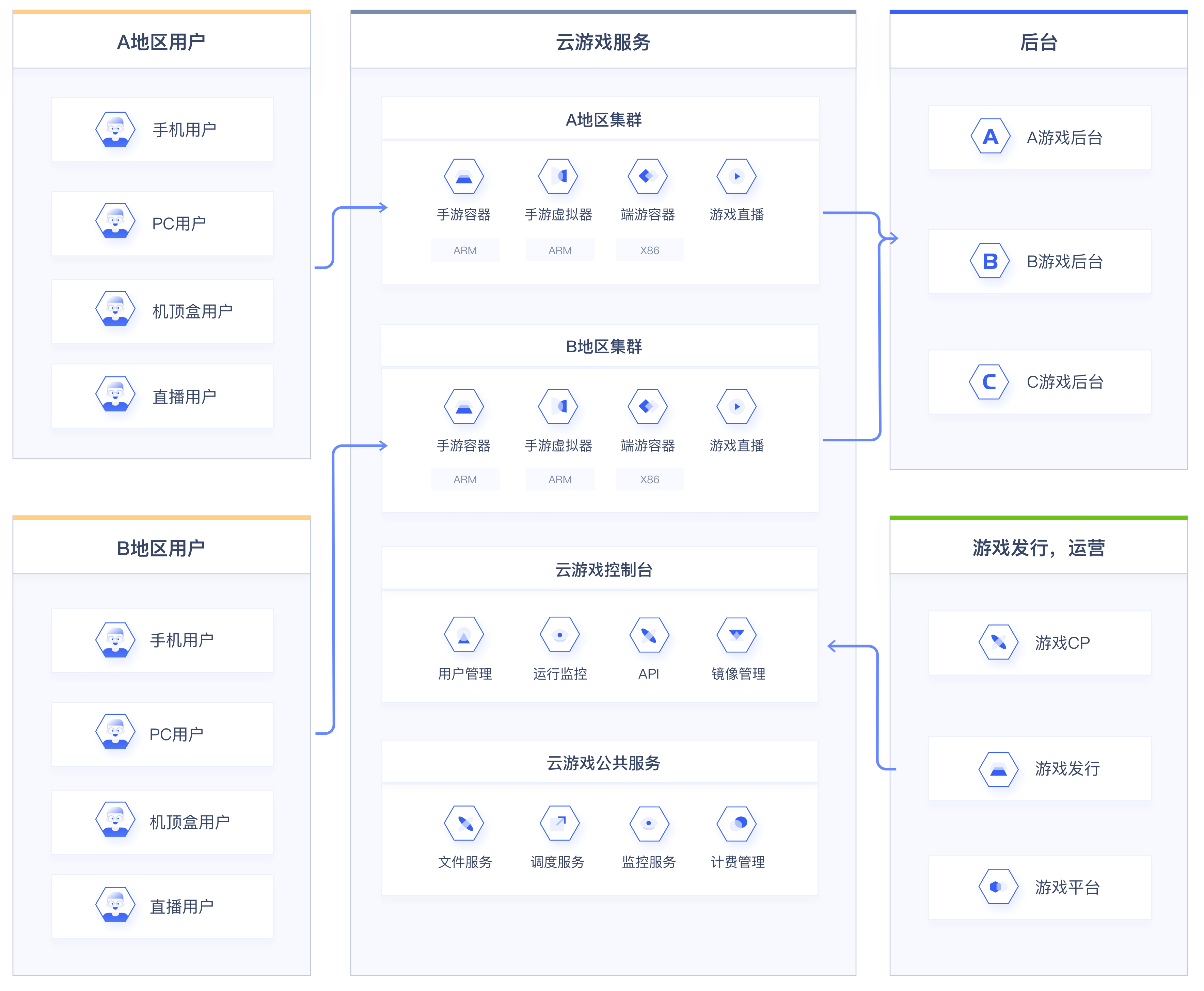 游戏云服务,从构建基础设施到游戏上线到后期精细化运营,服务服务涵盖项目整个发展周期。拥有业内领先的贵阳云数据中心以及国内优质的BGP多线网络资源,高效稳定的云服务器、云数据库以及专业的安全服务,为用户提供贴心全面的的游戏云解决方案,筑造游戏稳定运行的基石。
